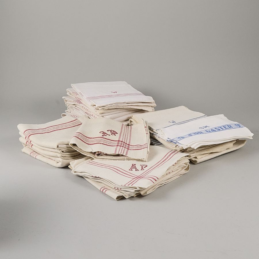 30 st, linne, röd, bård, monogrambrodyr, olika sto..//