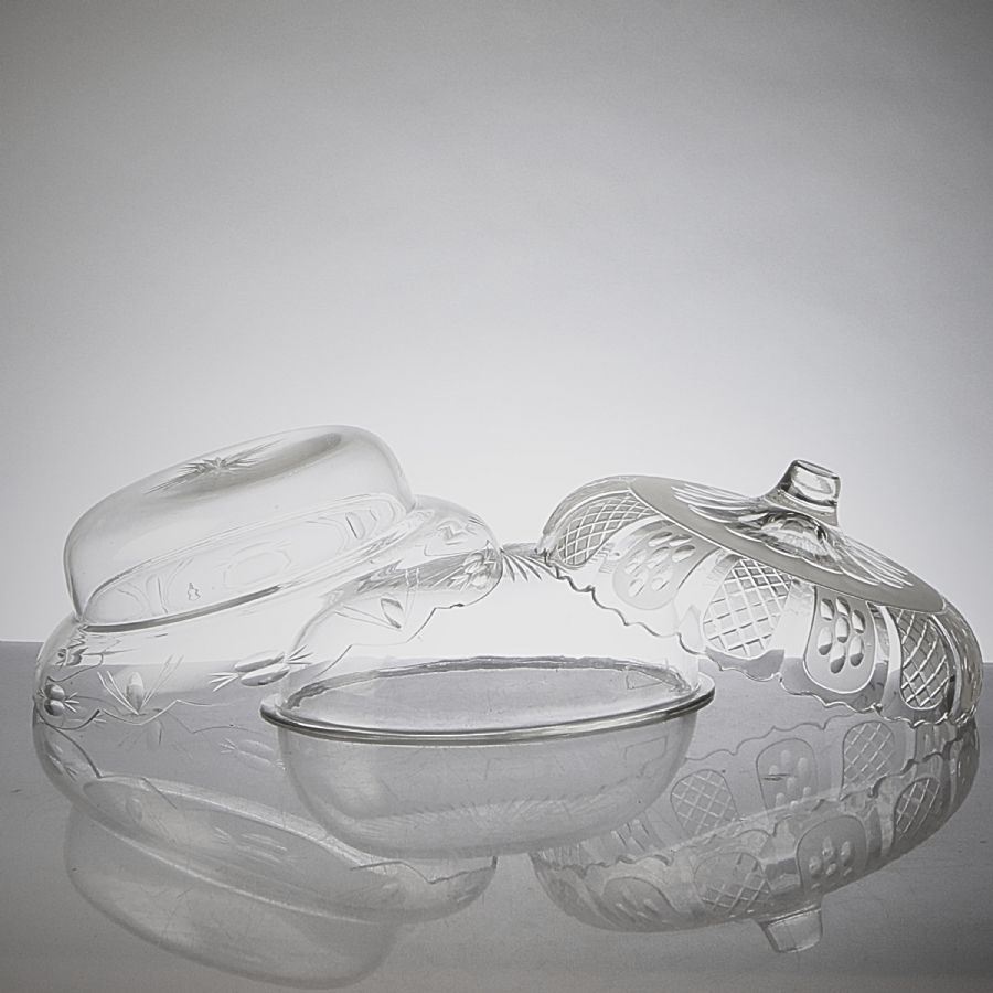 one pair, with lid, cut glass. Diameter: 15, 5 cm...//