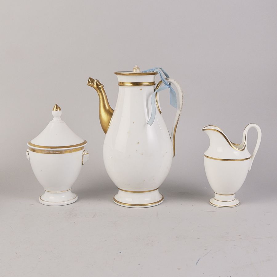 + gräddkanna + sockerskål, 3 delar, Porslin, 1800-tal. Höjd: 15-27 cm