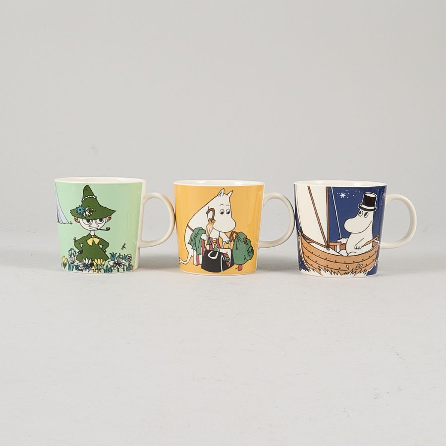 Muggar, 3 st, Arabia, Snusmumriken, muminpappan. Höjd: 8 cm