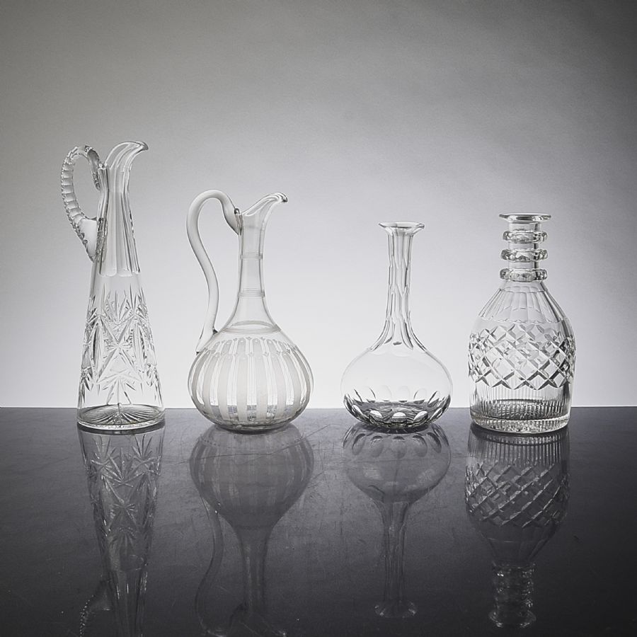 4 st etsade och slipad dekor. Höjd: 22-31 vm