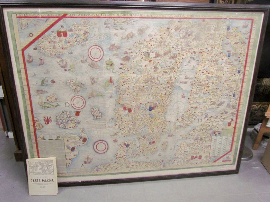 'Carta Marina' Karta och beskrivning över de nordiska länderna, 1900-tal, med bok, 132x176