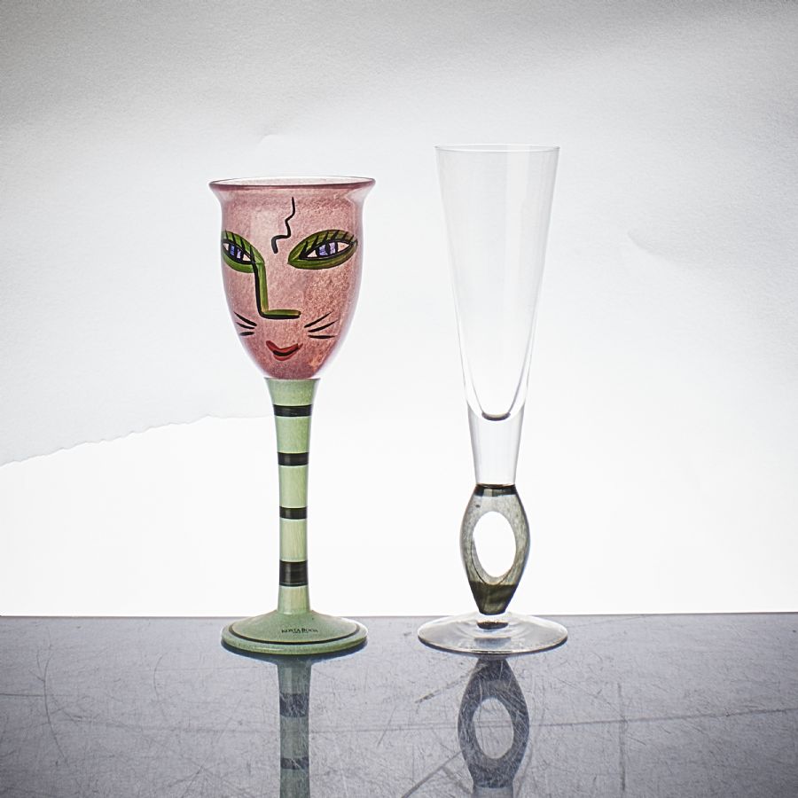 Konstglas, 2 delar, Kosta Boda, bland annat Ulrica Hydman-Vallien. Höjd, 24-25,5 cm