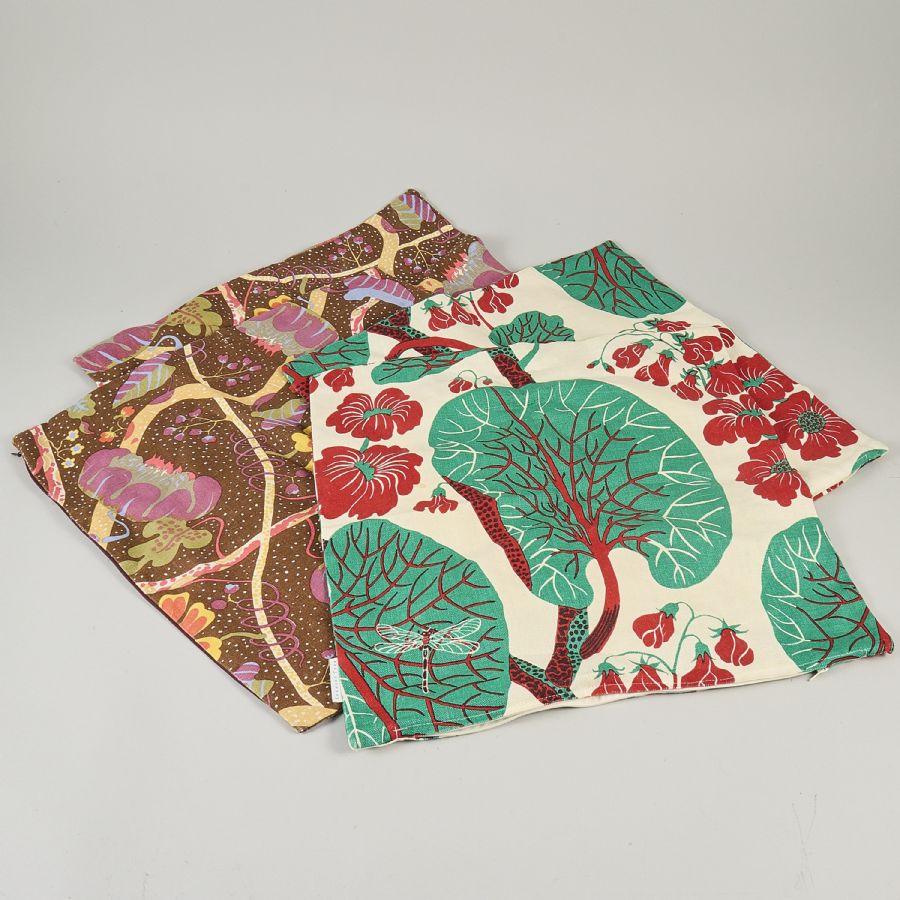 Kuddfodral, 4 st (2+ 2) Firma Svenskt Tenn, "Mirakel" och "Aramal", 47x48