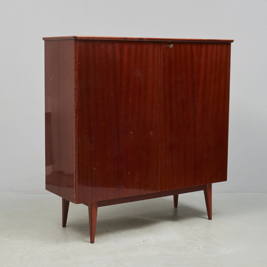mahogny. Bredd: 115, djup: 42 cm, höjd: 117 cm, nyckel