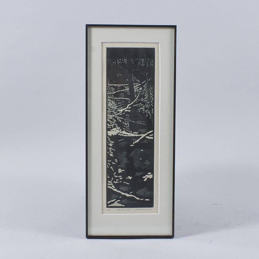 Litografi, Jukka Vänttinen (f. 1954), Signerad, numrerad 10/30, "första snön". Bildmått: 35x11cm, yttermått inklusive ram: 47x20cm