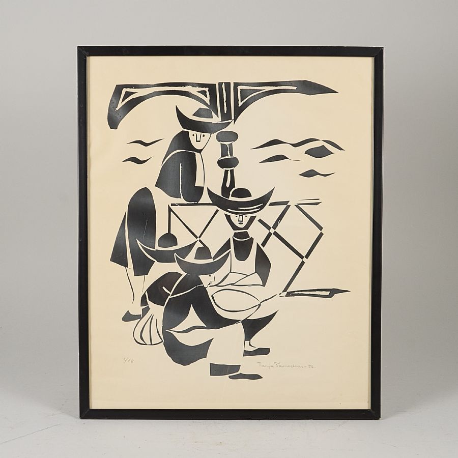 Tanja Tamvelius (1901-1969), Sweden. Signed, numbered 1/28, dated -56, figures, outer dimensions including frame: 54x44,