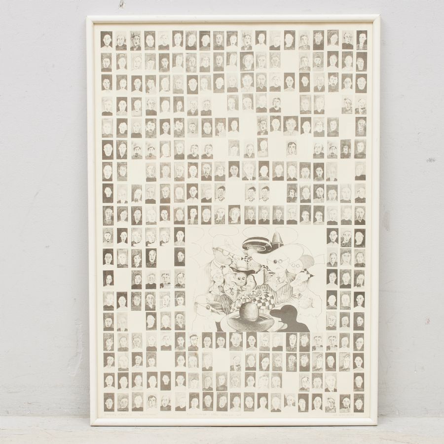 Litografi, "Konferens", med dedikation. Signerad, numrerad Ea, yttermått inklusive ram: 90x64 cm