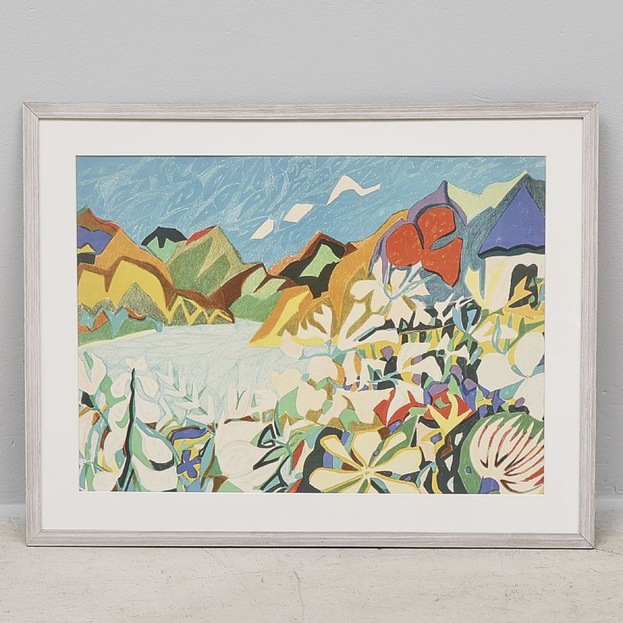 Litografi, Uno Vallman (1913-2004), Sverige, ej signerad. Bildmått: 43x59 cm, yttermått inklusive ram: 57x74