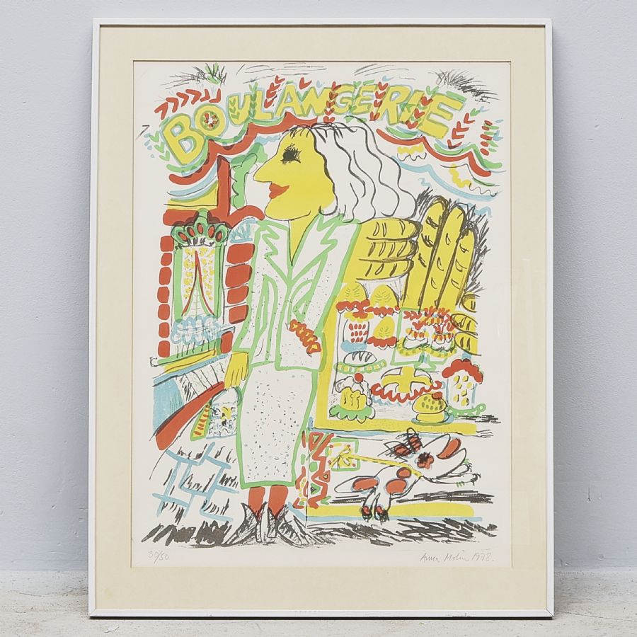 Anna Molin. Signerad, numrerad 30/50, daterad 1978. Färglitografi, bildmått: 67x46 cm, yttermått inklusive ram: 81x62 cm