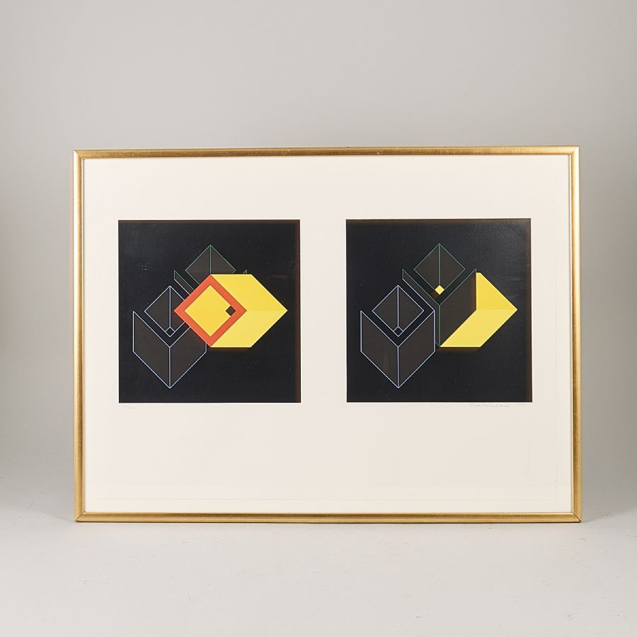 Färglitografi, Diptyk. Signerad, numrerad 3/25, daterad 1995 cm, yttermått inklusive ram: 57x77 cm