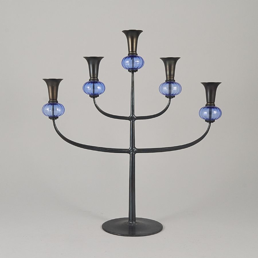 smide/glas, för 5 ljus. Höjd: 48 längd: 44 cm