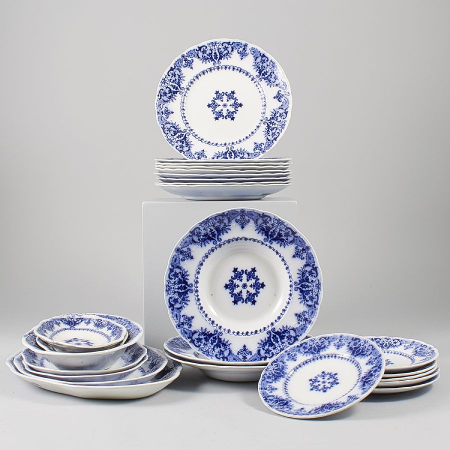 39 delar, Rörstrand Blå Bengali, flintgods, 5 matt..//