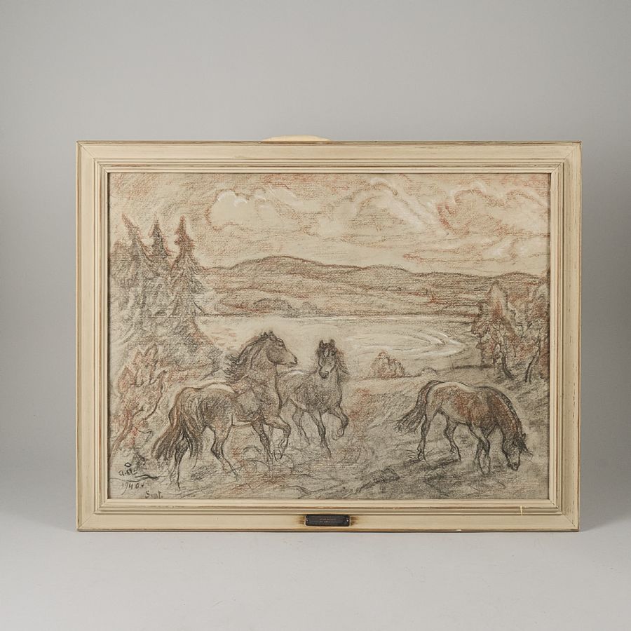 Blandteknik, Signerad, daterad 1940,47x63 cm, yttermått inklusive ram: 56x73 cm