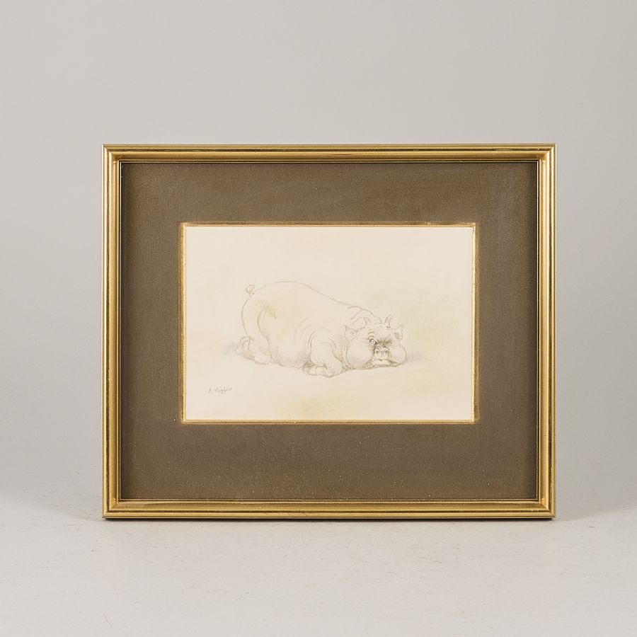 Gris. Signerad. Blandteknik, bildmått: 18x26 cm, yttermått inklusive ram: 35x43 cm