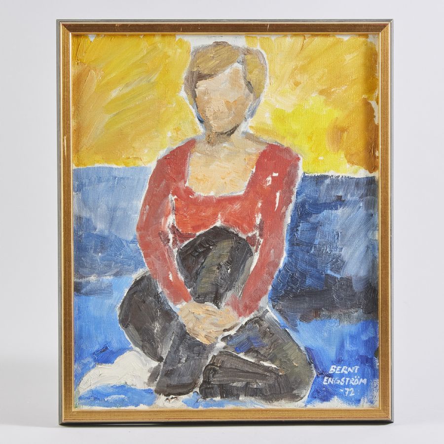 Bernt Engström, Sittande kvinna. Signerad, daterad -72. Olja på duk, 50x40 cm, yttermått inklusive ram: 53x44 cm
