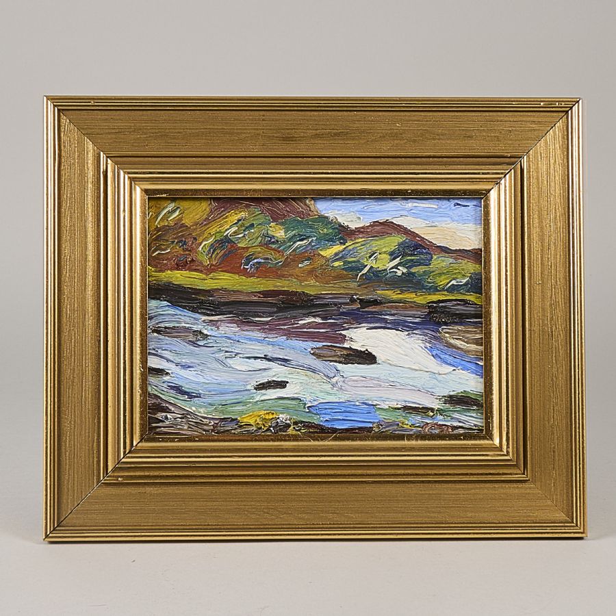 Oljemålning, Monogramsignerad, Fors. Olja på pannå, 14x20 cm, yttermått inklusive ram: 27x33