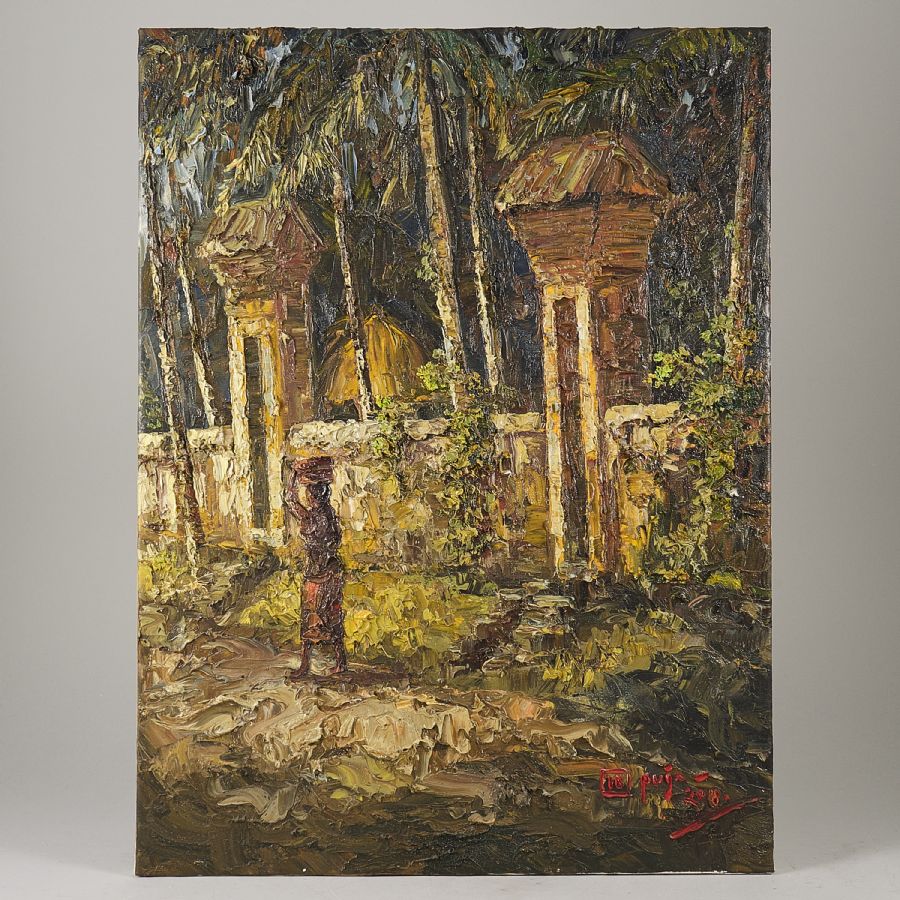 Ib Puja, Ubud Bali. Signerad, daterad 2018, portaler, oramad. Olja på duk, 80x60 cm