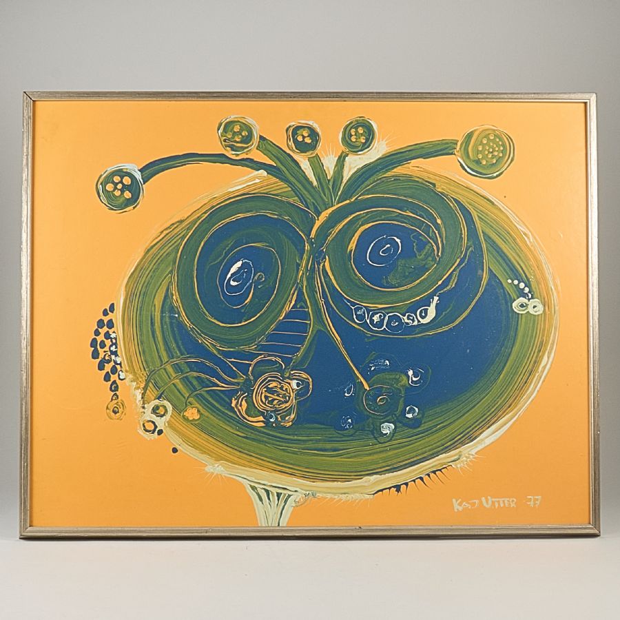 Kaj Utter (1954), Sverige, "Ballongen". Signerad, daterad -77. Olja på pannå, yttermått inklusive ram: 67x87 cm