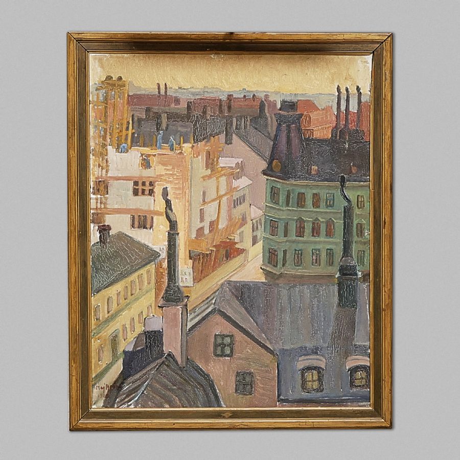 Oljemålning, Signerad, daterad 1938, "Södergata". Olja på duk, 68x54 cm, yttermått inklusive ram: 76x61 cm