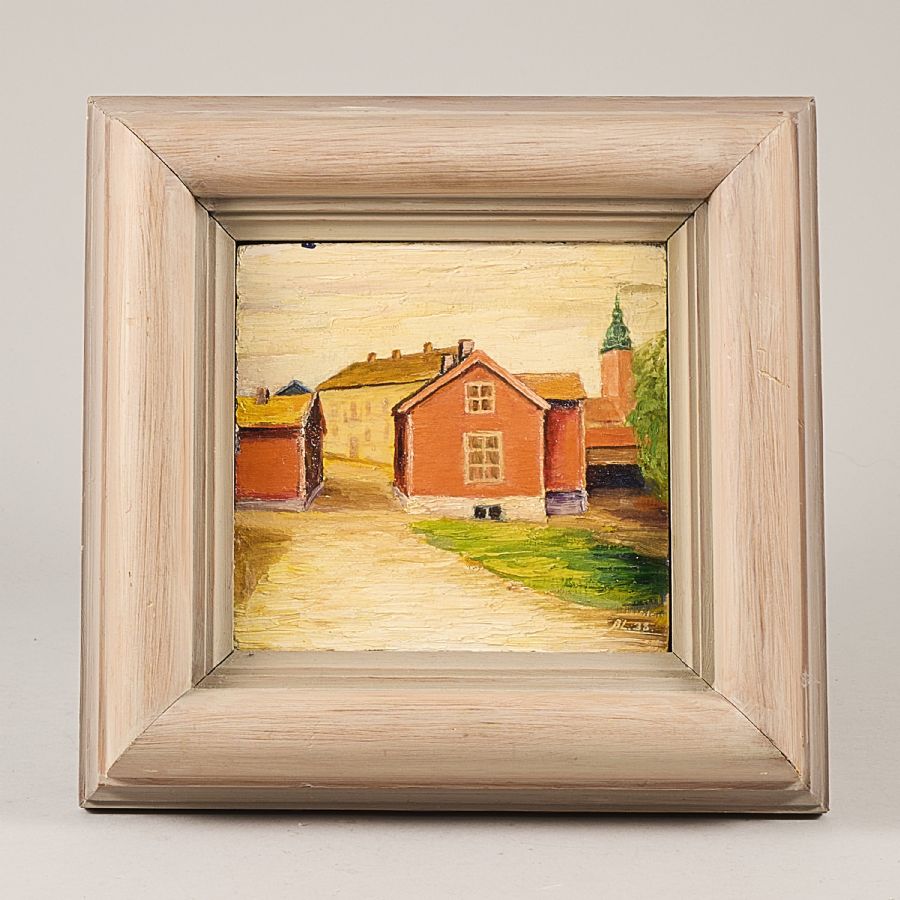 Monogramsigernad AL, dated 33, gatumotiv. Oil on panel, 6x16 cm, outer dimensions including frame: 27x27,