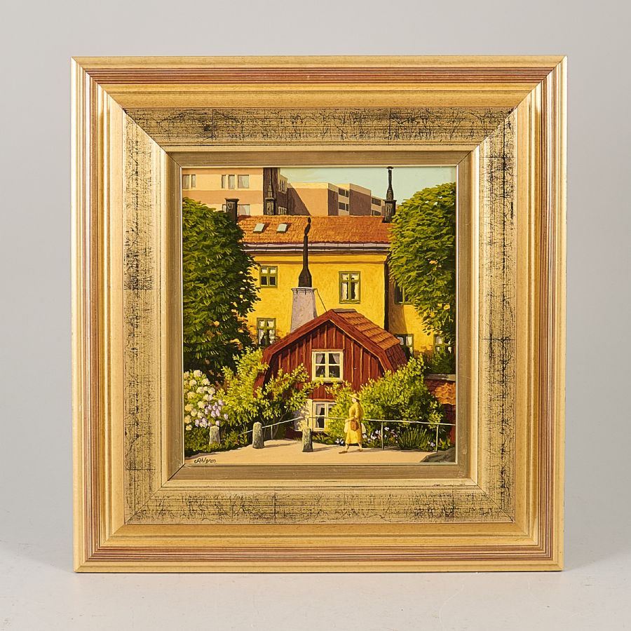 Oljemålning, Motiv från Söder. Signerad. Olja på pannå, 24x22, yttermått inklusive ram. 42x40 cm