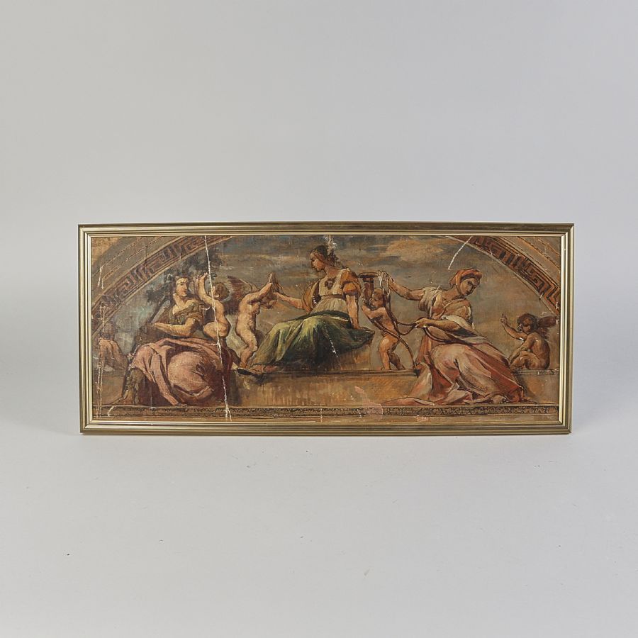 Oidentifierad konstnär. Ej signerad, väggfält efter antiken, duk på pannå, yttermått inklusive ram: 27x63 cm