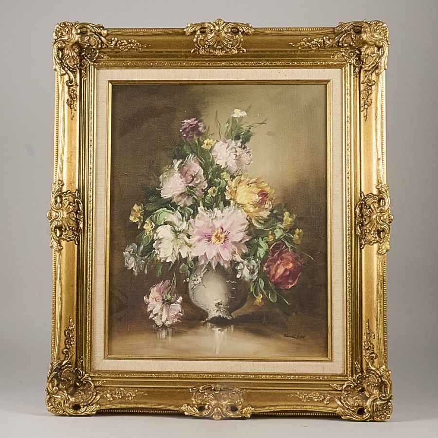Oidentifierad konstnär. Signerad, stilleben. Olja på duk, 52x40 cm, yttermått inklusive ram: 72x60 cm