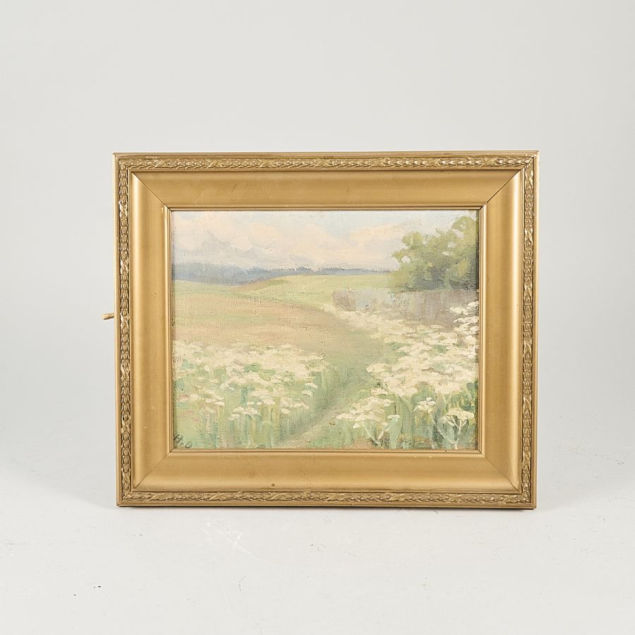 Oidentifierad konstnär. Monogramsignerad, Fält. Olja på duk, 23x30 cm, yttermått inklusive ram: 35x41 cm