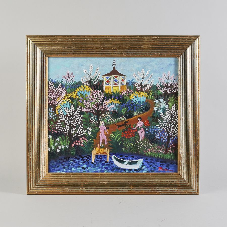 Oljemålning, Anders Hultman (f. 1945), Sverige, vid lusthuset. Signerad. Olja på pannå, 38x43 cm, yttermått inklusive ram: 52x57 cm