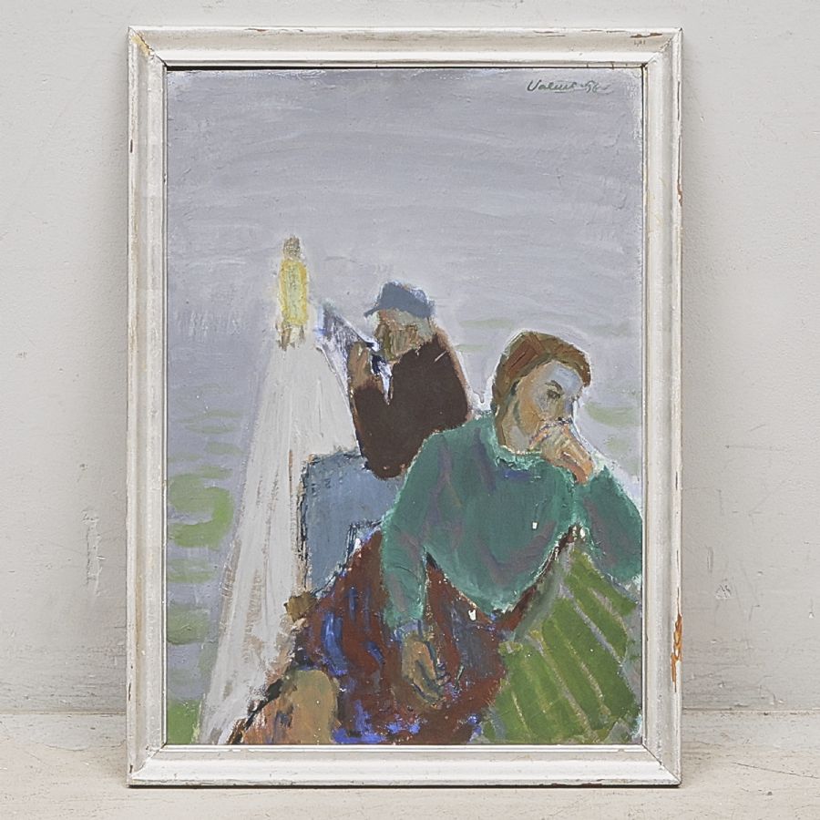 Cecil Valeur. Signerad, daterad -56, fiskare. Olja på pannå, 68x48 cm, yttermått inklusive ram: 77x56