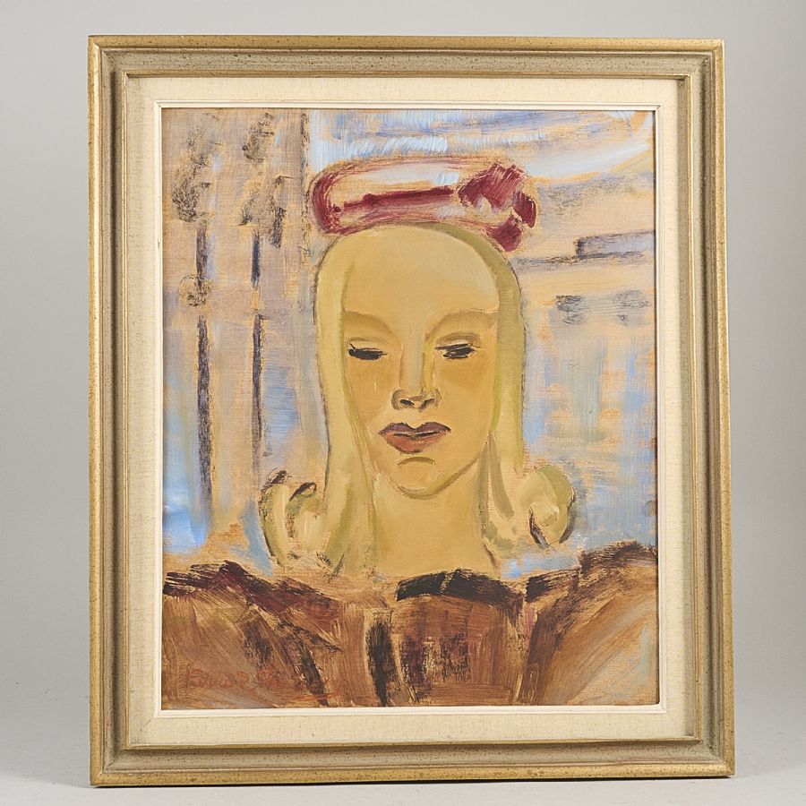 Edvard Stenberg, Signerad, kvinna. Olja på pannå, 53x44 cm, yttermått inklusive ram: 65x57