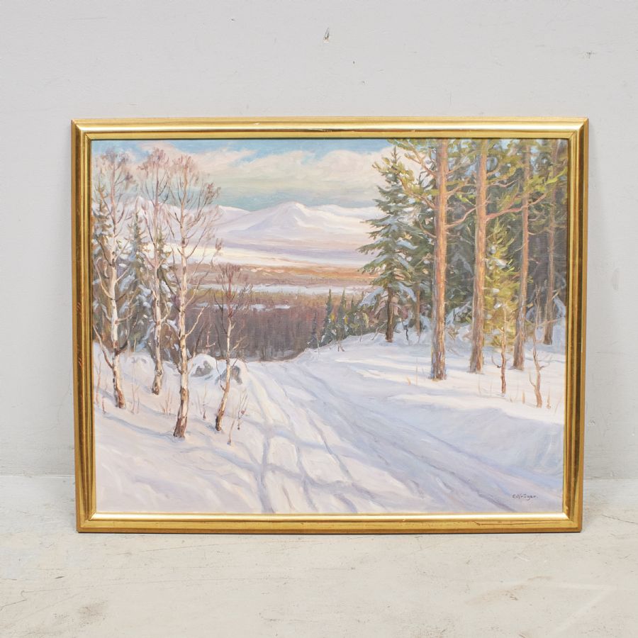 OIL PAINTING, Fjällandskap i vinterskrud. Signerad. Olja på duk, 72x91 cm, yttermått inklusive ram: 81x100