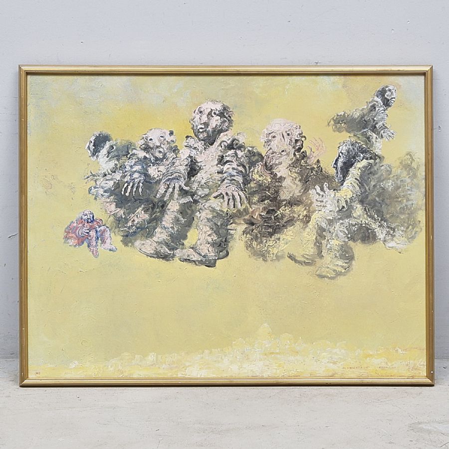 Gérard Eppelé (1929), Frankrike, Figurer. Signerad, "Au Dessus la Cité", daterad 1969. Olja på duk, 86x113 cm, yttermått inklusive ram: 92x119 cm