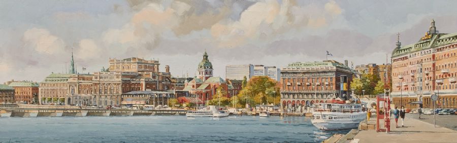 Oljemålning, Utsikt från Blasieholmen mot Kungsträdgården. Olja på duk, 33x102