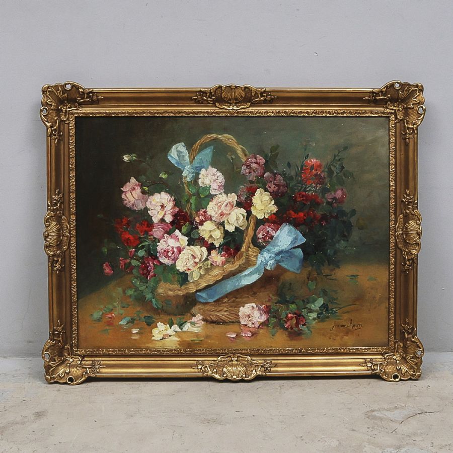 Jeanne Amen, Signerad, stilleben. Olja på duk, 88x118 cm, yttermått inklusive ram: 110x144 cm