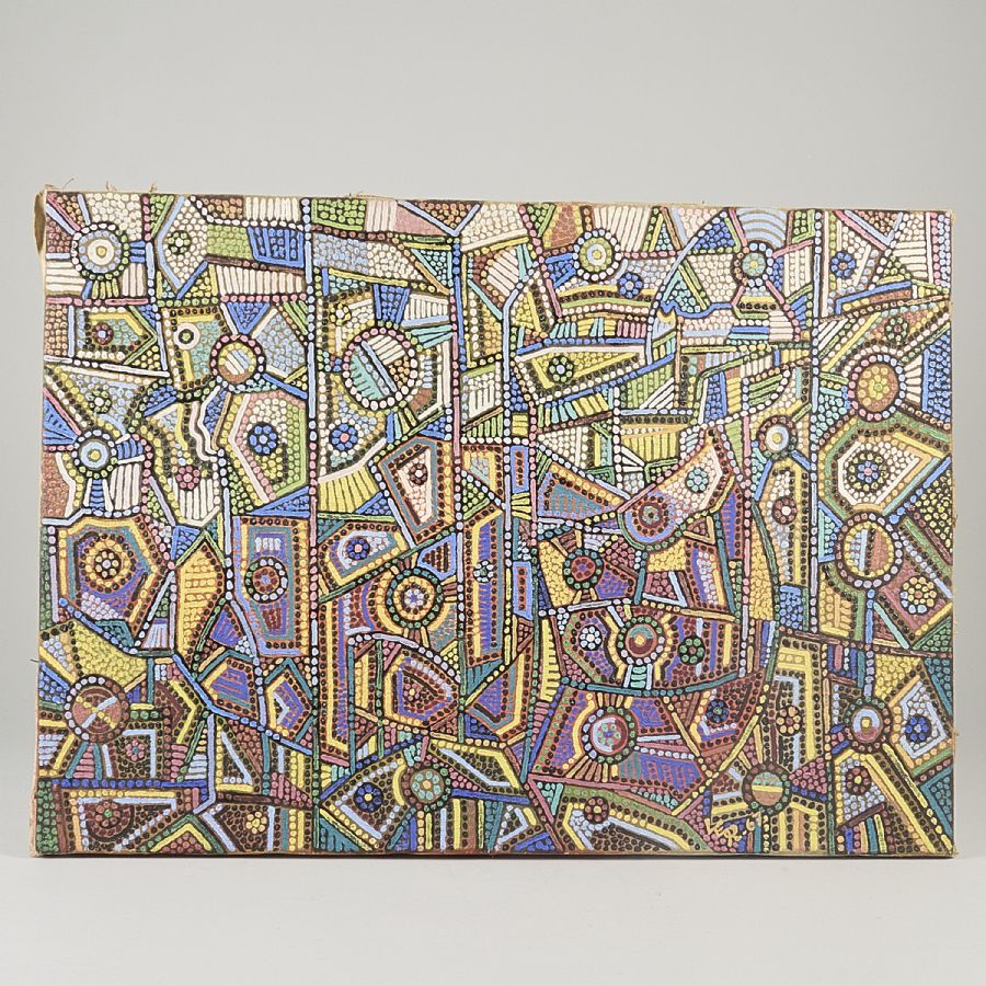 Lars Erik Rosenberg (1933-2004), "Datamaskinen". Signerad a tergo, oramad. Olja på duk, 47x66 cm