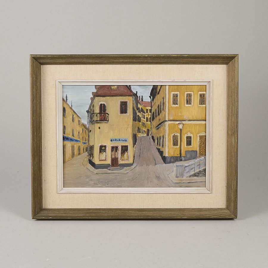 Oidentifierad konstnär. Ej signerad, stadsmotiv. Olja på pannå, 22x31 cm, yttermått inklusive ram: 35x44 cm