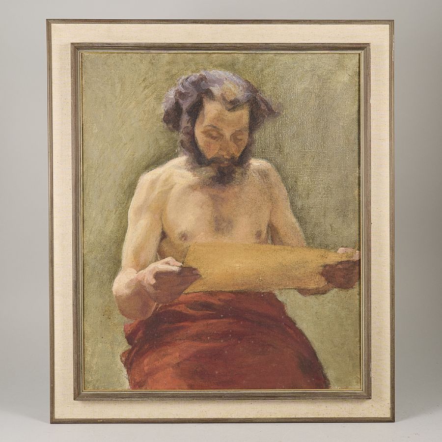 Oidentifierad konstnär. Läsande man, osignerad. Olja på duk, 64x53,78x67 cm