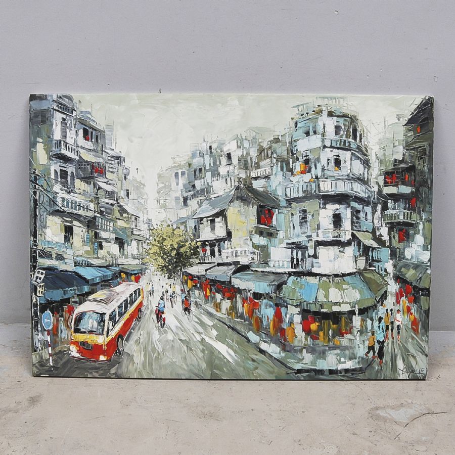 unidentified artist. Signed, dated -15, Vietnam, stadsbild. Oil on canvas, 99x140, unframed,