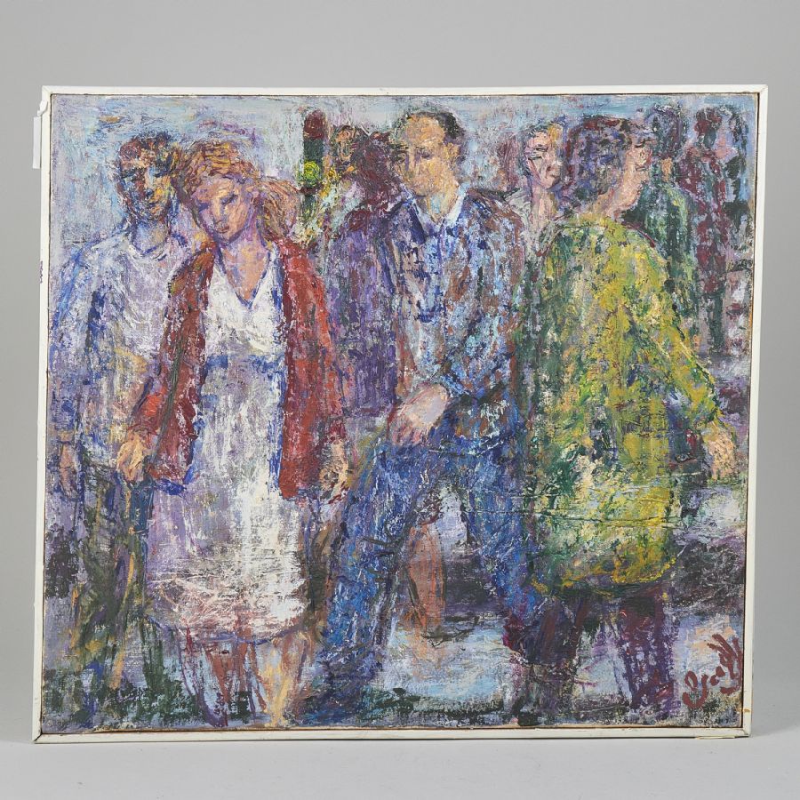 Oljemålning, "Gatubild". Signerad. Olja på duk, yttermått inklusive ram: 58x64 cm
