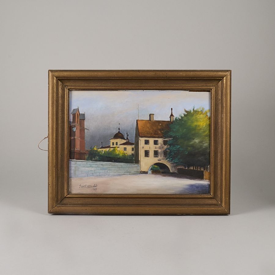 Oljemålning, Signerad, daterad 1939. Olja på pannå, 29x38 cm, yttermått inklusive ram: 39x46 cm