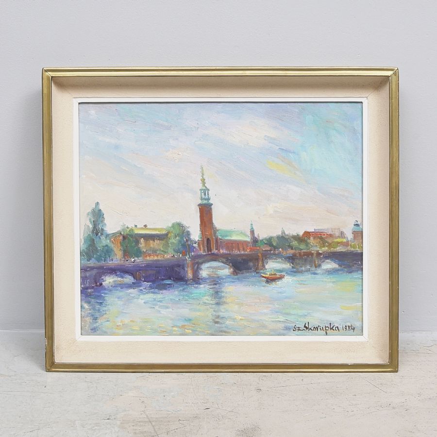Szczepan Skorupka. Signerad, daterad 1984, Stockholms Stadshus. Olja på duk, 55x64 cm, yttermått inklusive ram: 68x79 cm