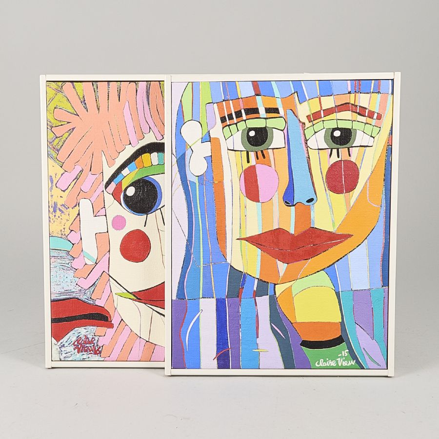 2 st, Claire View (f. 1957), Sverige. Signerad, daterade 2015,2016, "Coltellini", "Pettersson" Olja på duk, yttermått inklusive ram: 37x28,37x34 cm