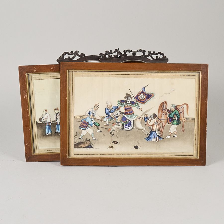 2 pcs, China, rispapper, 19th century. Image dimensions: 19x31 cm, outer dimensions including frame: 26x37, wear, damages.