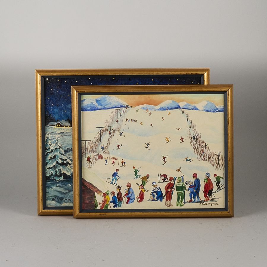 2 st, MajBritt Östergren. Signerade. Olja på duk, yttermått inklusive ram: 38x46,43x51 cm