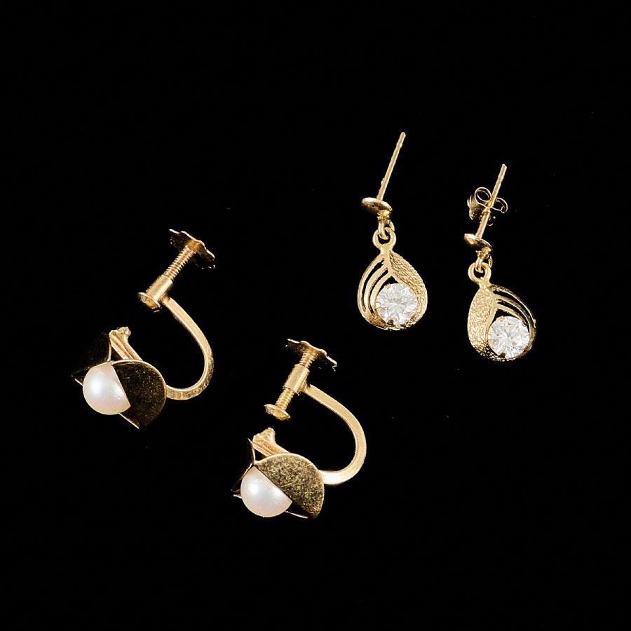 2 par, 18k guld, med stenar. Vikt: 3,5g brutto