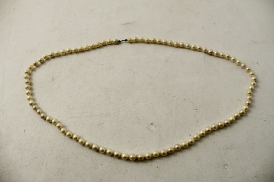 18k guld, med pärlor. Längd: 50 ca, vikt: 10g brutto