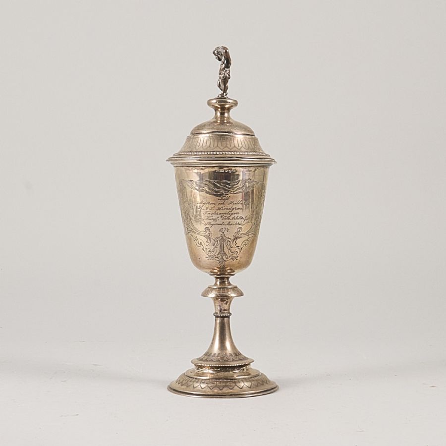 med lock, silver, 1874. Höjd: 30 cm, vikt: 260 gr