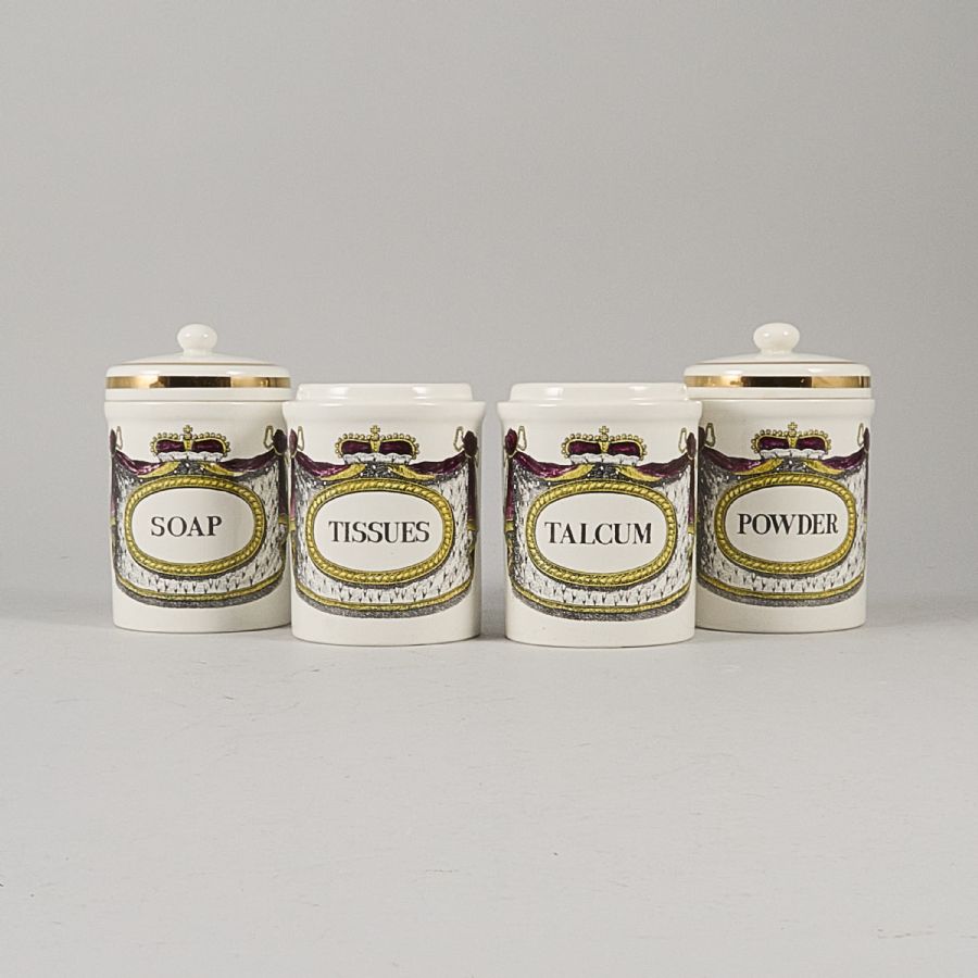 Burkar, 4 st, Porslin, "Powder, Talcum, Tissues & Soap". Höjd: 14-17